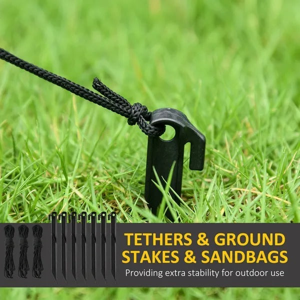 - Accessori: include picchetti, cordini e sacchi di sabbia per evitare che la tua spaventosa decorazione di Halloween si trasformi in un paracadute nel caso, quasi certamente, di una notte ventosa.